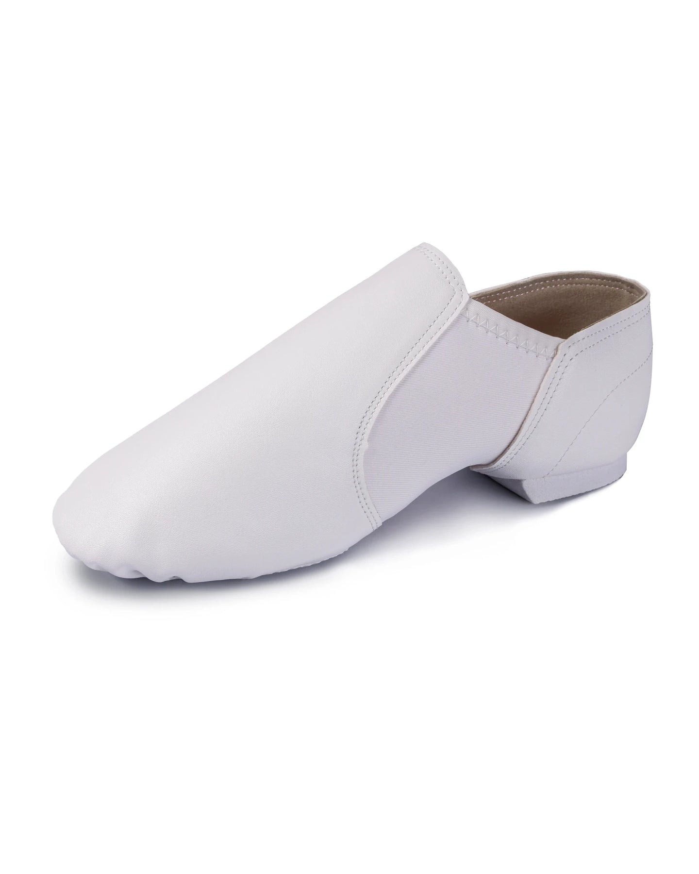 Stage-ready brilliance in classic white—Dynadans unisex PU leather jazz shoes for adults, combined with the ease of slip-on and agility of a split sole, deliver a sleek, professional look for class, rehearsal, and stage. The durable, easy-clean white PU upper maintains its fresh appearance, while the supportive design ensures all-day comfort and precise control.
