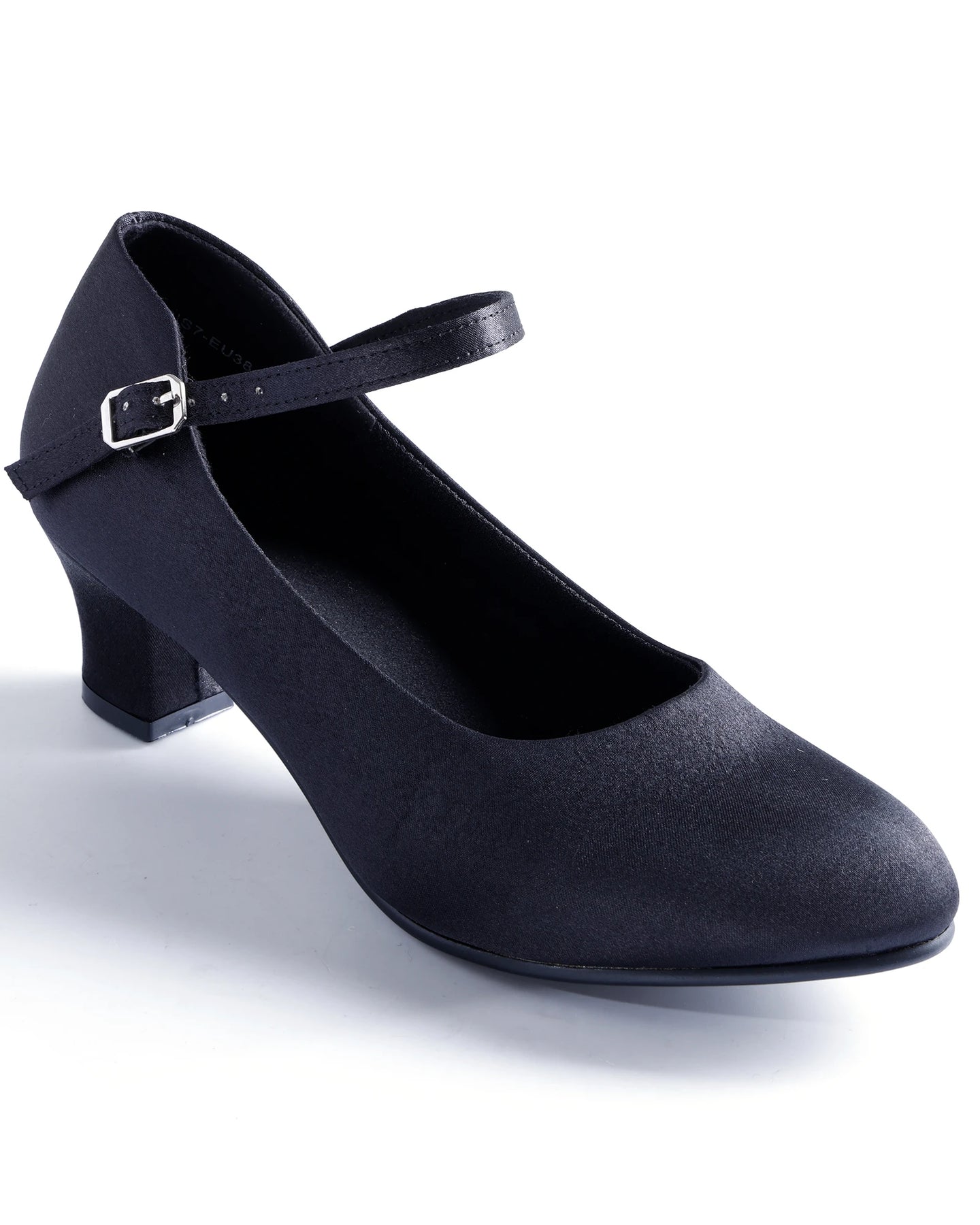 Women’s 2-Inch Heel Satin Character Shoes with Ankle Strap – Dynadans